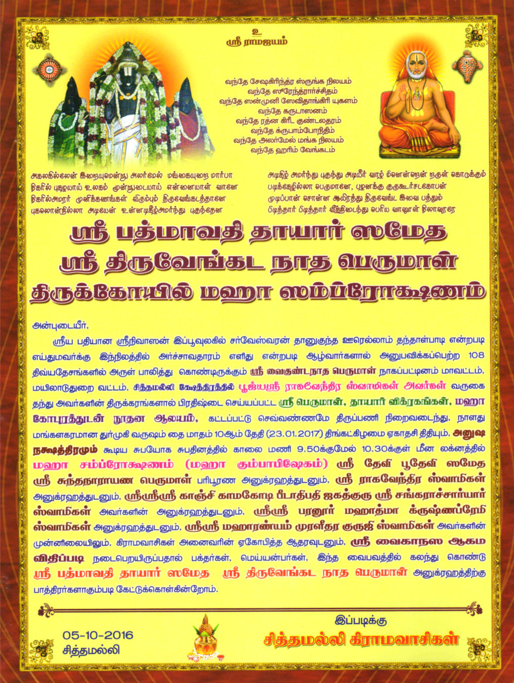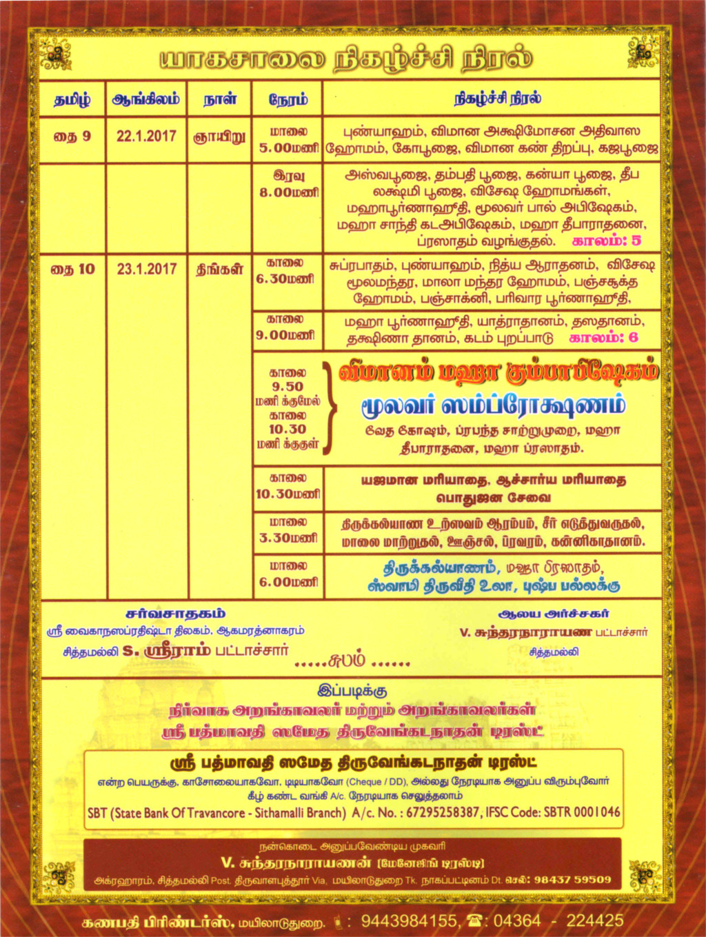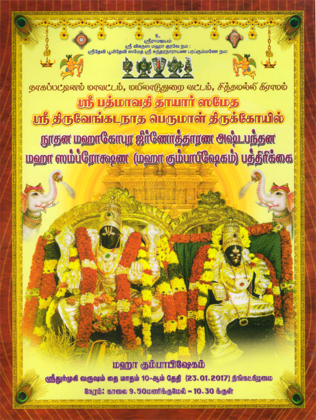 சித்தமல்லி கோவில் விழாக்கள் பத்திரிக்கை